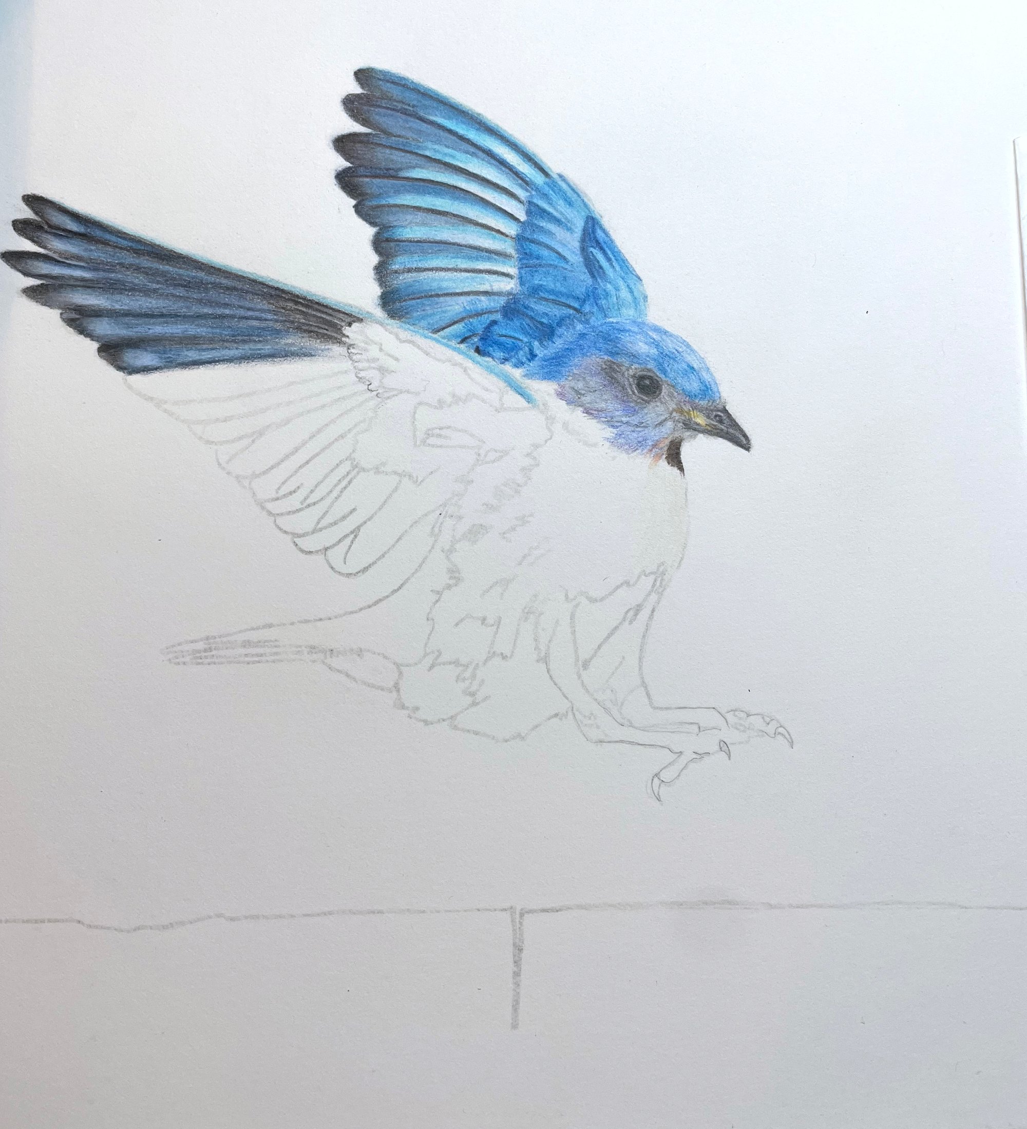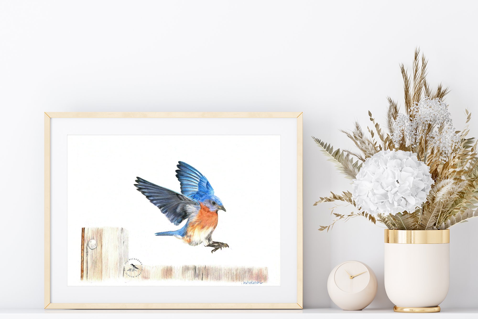 Coming in for a Landing - Print of an Original Bluebird Colored Pencil Portrait