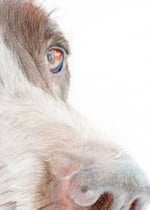 This original colored pencil portrait is of a lovely German short haired pointer named Juno. German short haired pointers, or GSPs, are bird dogs or hunting dogs known for their speed and agility, but I drew Juno for her lovely coat and gorgeous eyes. The photographs soft lighting and her far away look gave the portrait a gentle dream-like quality.
