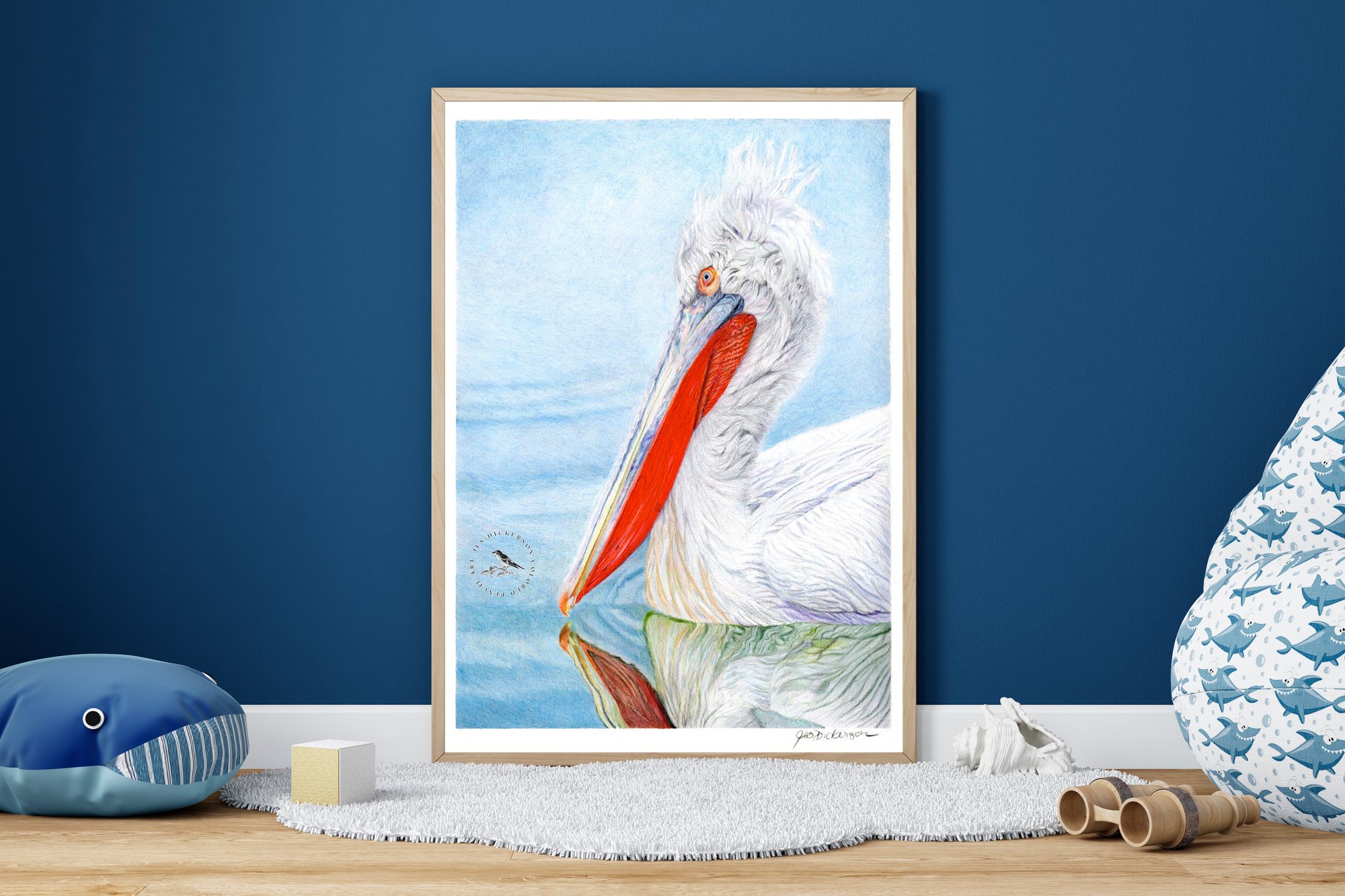 On the Open Seas - Pelican Original Colored Pencil Bird Portrait